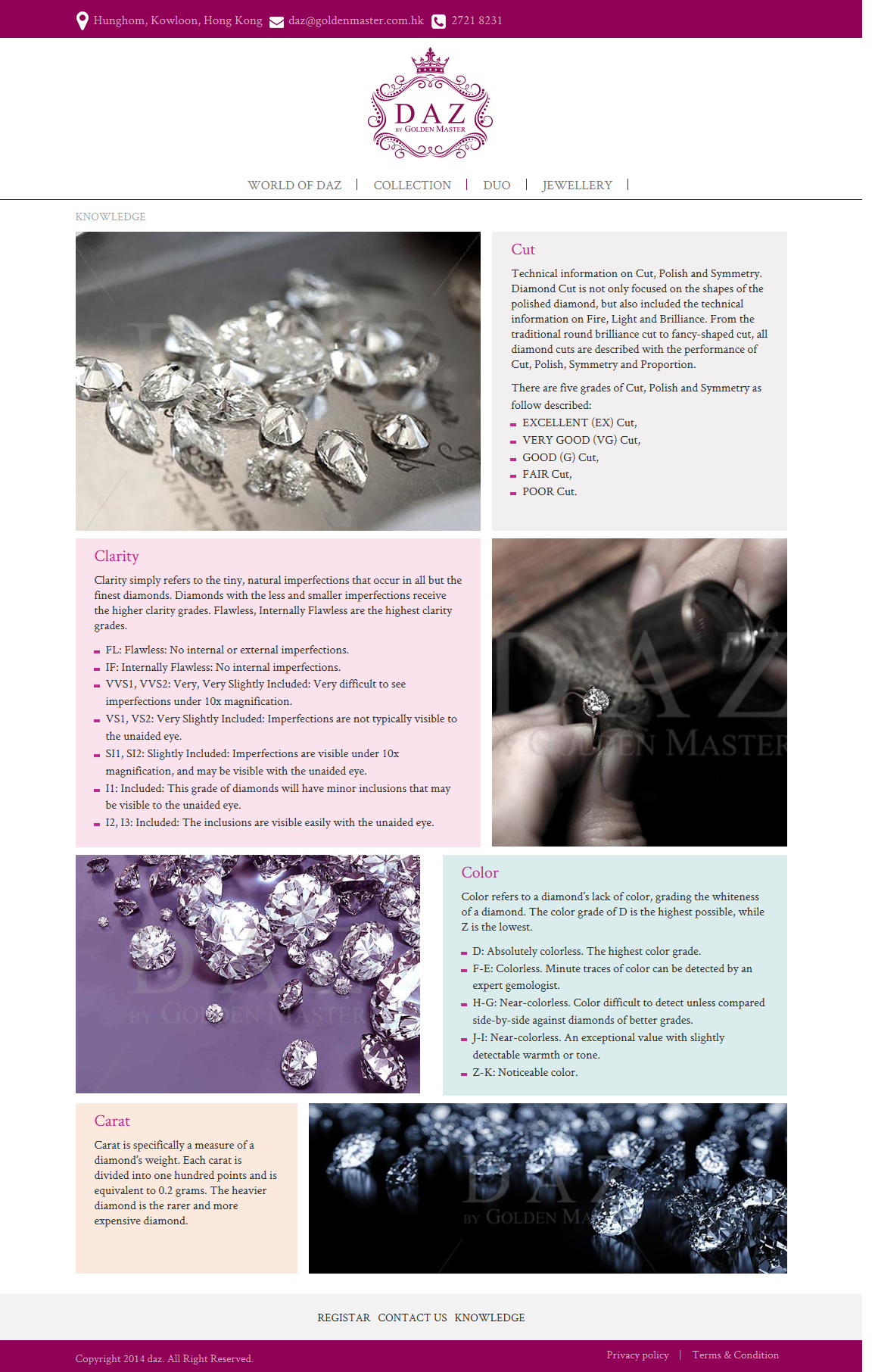 This is a Jewelry web design, includes: mobile responsive, product catalog, membership system, enquiry form, watermark, WordPress CMS.
