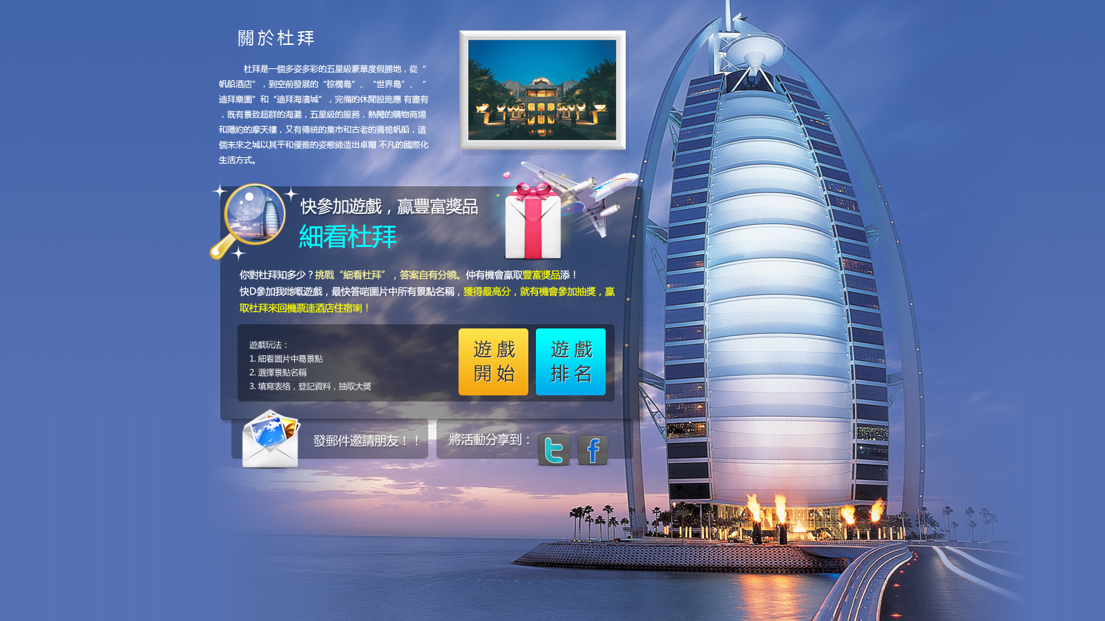 This campaign is sponsored by Dubai tourism board. Potential travelers play a memory game from facebook and win a ticket + hotel to Dubai!